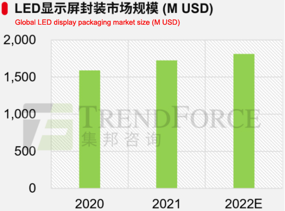 In the packaging field, in 2021, mainly driven by automotive LEDs, lighting and LED displays, the global LED packaging market will reach US$17.65 billion, a year-on-year increase of 15.4%.